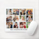 Modern Minimalist Simple 12 Photo Collage Family Photos with Name Mouse Pad - Black & White or choose your colours