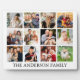 Modern Minimalist Simple 12 Photo Collage Family Photos with Name Plaque - Black & White or Choose your background colour