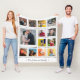 Customize this soft fleece blanket with 13 square photos arranged in a grid collage layout, with one large image and the remainder small. Your single Add your family name or custom caption along the bottom in chic grey.