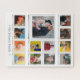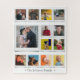 Customize this jigsaw puzzle with 13 square photos arranged in a grid collage layout, with one large image and the remainder small. Add your family name or custom caption along the bottom in chic grey.