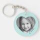 Light aqua blue or custom colour keyring featuring your photo inside a heart with the name in a handwritten style script font.