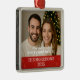 I was impressed by the quality and size of the ornament. Metal framing and design were perfect. Definitely recommend any of the metal framed ornaments. I ordered different ones all of the same quality and personalized professionally. Perfect No pictures as they were all gifts