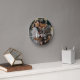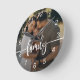 Modern, elegant family photo clock features single photo of the family, typography script ''family'' in trendy handwritten lettering.