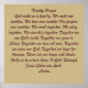 Family Prayer - God made us a family, We need one another, We love one another We forgive one another, We work together, We play together, We worship together, Together we use God's word, Together we grow in Christ, Together we love all men, Together we serve our God, Together we hope for Heaven, These are our hopes and ideals, Help us to attain them, O God, Through Jesus Christ our Lord - Amen ...