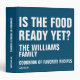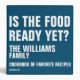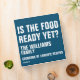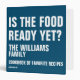Cool and funny blue and white cook book for your family favourite recipes, with bold font text "is the food ready yet?" and personalized with the name of the family and title