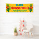 Family Reunion banner for Aloha Hawaiian tropical tiki or luau theme event. Hibiscus flower and tropical plant motif with fully editable text on sunny yellow background.