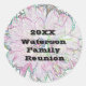 Personalize your family reunion with an inexpensive envelope seal sticker featuring an artistic flower as the backdrop. The flower displays colours of pink and green along with a light blue background. The year and your family name stand out in large black font. All text is easily personalized.