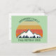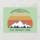 Cool custom family reunion postcard invitation for an autumn get-together with cousins, aunts, uncles, and grandparents. Invite the whole crew with your last name and year in green surrounding the beautiful fall sunset image over the mountains and trees. Great personalized group camping trip design.