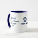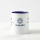 Personalize this family reunion mug with your family name, location, year, and heritage(s). Great as a keepsake for families who wish to make memories together. The modern typography together with an elegant script text and the design elements (a globe and stars) are in navy blue.