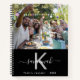 A chic black background. Personalize and add your own photo, a name, monogram letter and a text. The name is written in white with a large modern hand lettered style script with swashes. The monogram letter in grey. To keep the swashes only delete the sample name, leave the spaces or emoji's in front and after the name
