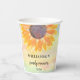 This family reunion paper cup is decorated with a yellow sunflower on a watercolor background.