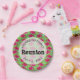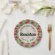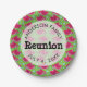 This family reunion paper plate features a summer pattern of watermelon slices on a bright green background. Custom text allows you to add your name and date of the reunion.
