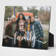This custom 8 x 10 photo plaque that says "family" in a modern script font with hearts in white and your family photo would look fabulous in your home or office or be a wonderful gift for loved ones. It's super easy to customize - just upload your photo. It's that simple!