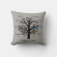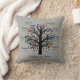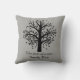 Family Tree, Black Tree on Grey, 8 Names & Dates Throw Pillow