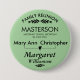 A family reunion name button with family tree information helps break the ice and improve memories! This custom button features attendees first and last name with parent's first names, name and location of event. Create custom buttons for your next family reunion with this easy to use design. These buttons are easy to personalize and the info is so handy for everyone! You can change the background colour to coordinate with your event or colour code by family or other sorting: maybe the organizers are a different colour.