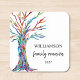 These paper coasters are decorated with a mosaic family tree in the colours of the rainbow.