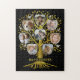 Family Tree Photo Collage 8 Pics Name Gold Black Jigsaw Puzzle