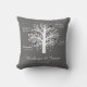 Family Tree, White Tree on Grey w/ Names & Dates Throw Pillow