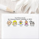 You can customize these cute stick figure family return address labels with names and your address! Features a dad with short dark hair, a mom with blonde hair, a boy with pacifier, a baby girl, and a cat.