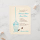 These wedding invitations feature a fanciful, bright teal blue painted birdcage with a heart and swirls, and two cute chocolate brown birds flying from it, against a faintly swirled, watercolor cream background. The wedding invitation wording, in alternating script and classic serif fonts, is completely customizable.