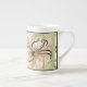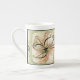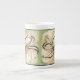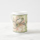 In soft shades of pink, brown, mossy green and black, this original, highly stylized flower design by Leslie Sigal Javorek, on this fine bone china mug, evokes feelings of graceful movement, energy, and magic.