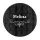 A fancy cutting board, this design features a black background with your name written in the centre using bold white font.  Underneath is a silver faux glitter design that is elegant.  Order yours today!