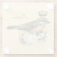 Glass coaster features fancy vintage green bird with added crown and floral nest on peach background. Personalize in modern script black font