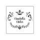 Customizable rubber stamp features ornate crown and leaves silhouette with modern script text.