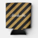 Custom shiny faux gold glitter diagonal striped wedding bottle and can coolers. Personalized modern bold stripe cancoolers with name or monogram. Fancy sparkly glimmers beverage holders with names. Classy glittery design with name or monogram letters. Make one for with for team groom, team bride, bridesmaid, maid of honour, groomsmen, best man, ring bearer, guests etc. Create your own cosy wedding favour / souvenir for guests at your party. Stripes pattern beverage holder design. Perfect for alcoholic drinks like beer. Elegant script typography. Custom background colour. Sparkling luxury style cozy cooler for chic wedding bbq, fancy bridal party, funny bachelor party, festive engagement, anniversary etc.