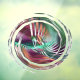 The elegant sweeping movement and colours of a Native American Fancy Dancer in Abstract