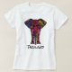 A cool t-shirt which says thailand (customize text to anything you want) with an abstract elephant design with a rainbow selection of bright vivid colours with decorative designs inside such as mandalas and geometric leaves and flowers.