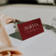 Classy and fancy wedding place card designed for a clean and elegant old money reception table setting. This folded escort card features a handwritten script wedding name paired with contemporary typography. The burgundy deep redand cream wedding decor adds a fresh, stylish touch to your wedding. Perfect as a custom guest name card for a chic and simple wedding celebration. Use this elegant folded place card to elevate your modern reception table decor. A sophisticated contemporary wedding table card that complements any minimalist wedding theme.