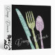 Superbly delish recipe organizer or cookbook binder featuring ornamental knife, fork, spoon, and flourishes, personalzed with your choice of colour scheme and fonts, plus title and other text, perfect for collecting family recipes, wedding gifting, or sharing recipes with family and friends.