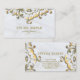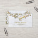 Fancy personalized business card design featuring an elegant faux gold baroque border on a white background with an area for your text. The text is fully customizable.