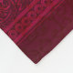 A blanket with a red background decorated with elegant swirls and ornamental designs along the borders. Personalize with a name.