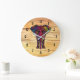 A clock with an elephant illustration with bright and bold colours with decorative floral and mandela style pattern. Wooden board (image not actual wood) background image. Art deco clock face.