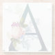 Beautiful and fancy florals include gold leaves, purple rose and blue wildflowers embellishments on large letter / initial A.