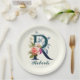 Beautiful and fancy florals include gold leaves, purple rose and blue wildflowers embellishments on large letter / initial R. Cream background. Personalize with name.