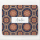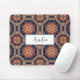 Mouse pad with a repeating pattern of decorative ornate elements in flower, star and sun shapes.