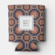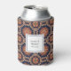 Can cooler with a repeating pattern of decorative ornate elements in flower, star and sun shapes.