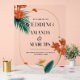 Il s'agit d'une enseigne mariage élégante avec des fleurs tropicales et un cadre doré avec une typographie élégante. Son design sophistiqué et élégant vous permet de modifier du texte, des images et des polices. Ce design est excellent pour tous ceux qui aiment les mariages tropicaux.