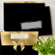 Elegant all-purpose envelope done in black, with graphics of a gold framed white address area and a solid gold back flap, with a gold bow. Inside the envelope there is graphics of a solid gold foil lining. Personalize the return address to suit your needs. Great for special occasion invites, thank you cards and announcements.