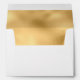 Elegant all-purpose envelope done in white, with graphics of a gold ornamental swirl, on the front and a solid gold back flap. Inside the envelope there is graphics of a solid gold lining. Personalize the return address to suit your needs. Great for special occasion invites, thank you cards and announcements.