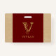 Fancy Gold Letter V Monogram On Red and Cardboard Badge