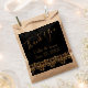 Fancy favour bags for weddings, anniversary parties and more, features gold coloured customizable text with bottom gold filigree border and black background