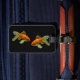 Photograph of fancy goldfish isolated on black. Customizable colour and text on reverse side.