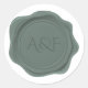 Add the look of a fancy wax seal to your envelopes or packages without all the mess! Graphic in creamy moss green with customizable text for initials, monogram or other special words.