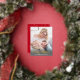 Fancy "Merry Christmas" on front in gold foil with gold foil border. Add your photo, name, year and message on back. Back has gold script text and gold stars on deep red background.