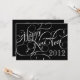 New Year's Eve Party Invitations -- Elegant and bold, but fun and festive in spirit -- Fancy silver script with bold trendy swirls on black background. This stylish and sophisticated design can be easily customized for formal dinner parties, cocktail party, or casual holiday open house celebrations. Just enter your information to create your own unique and trendy personalized invites for any special New Year event. Matching postage stamps, postcards, buttons, stickers and gifts available in gallery.