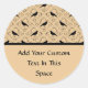 Fancy Pattern with Crows. Black and Beige. Classic Round Sticker